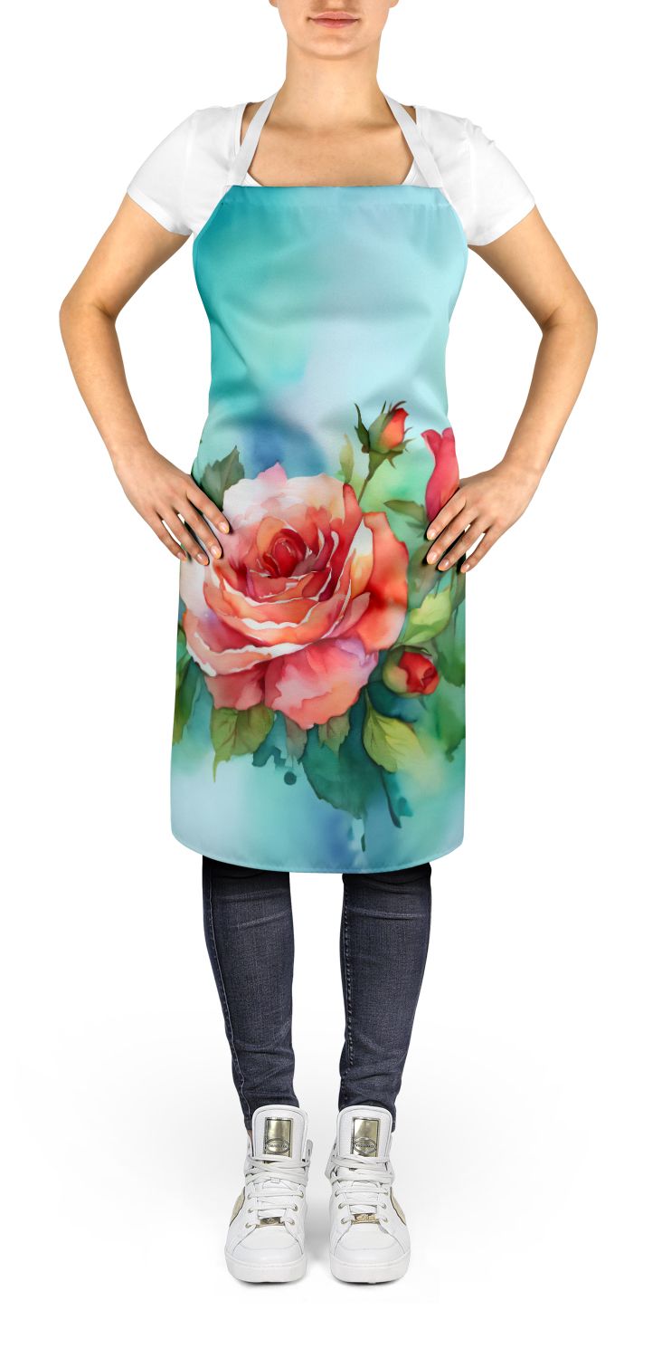 Home > Oklahoma Roses in Watercolor Apron Cooking Kitchen Server Baking Crafts Gardening for Adult Women Men, Unisex, Large, Multicolor