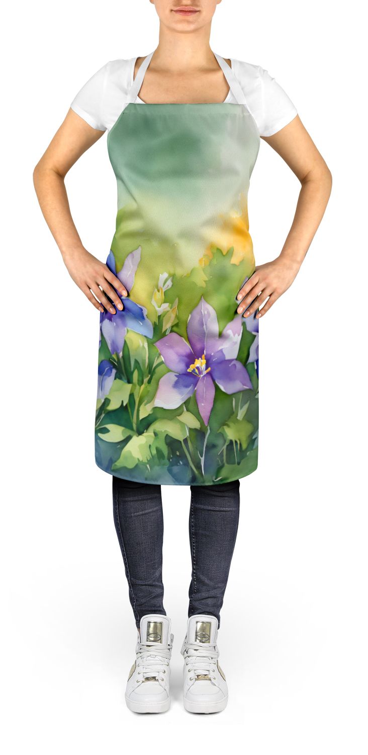 Home > Colorado Rocky Mountain Columbine in Watercolor Apron Cooking Kitchen Server Baking Crafts Gardening for Adult Women Men, Unisex, Large, Multicolor